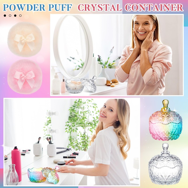 • Exquisite Craftsmanship, Quality Material: the set includes 2 powder puffs and two glass dusting powder jars, they have an exquisite appearance, made of crystal glass, and the powder puffs are made of soft and skin friendly plush; Tips: This product is not a sealed jar