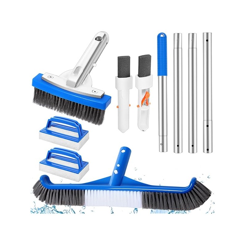 Tioncy 7 Pcs Pool Tile Cleaning Kits Includes Pool Brush with Pole Stainless ...