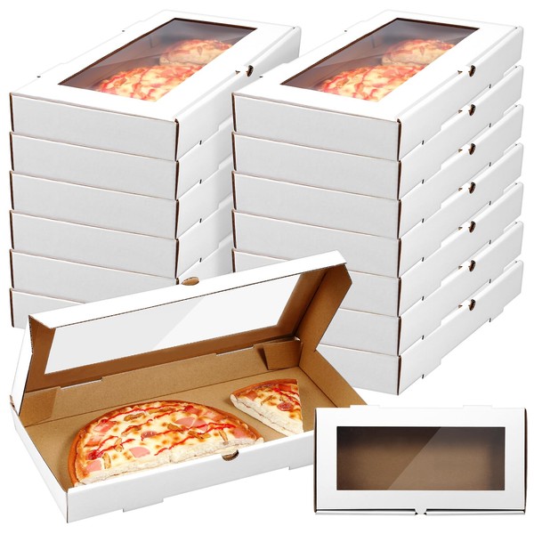 Tioncy Tioncy 24 Pcs Pizza Boxes 14 x 7 x 1.5 Inch Corrugated Pizza Box Rectangular Take out Baking Containers with Clear Window Lid Pull Ring Lock for Flatbread Pastry Bakery Charcuterie(White)