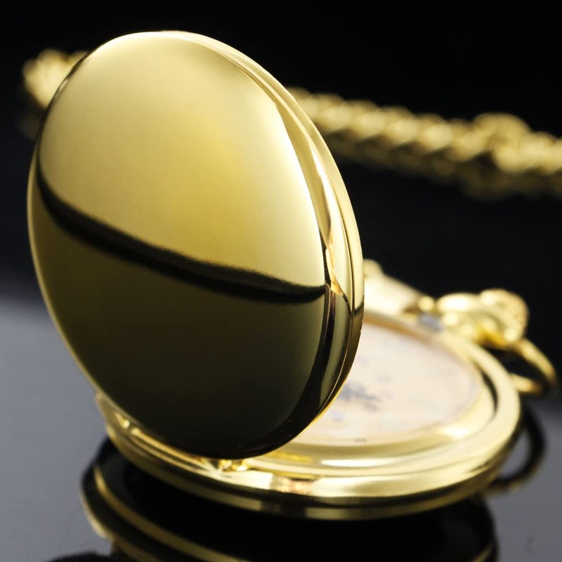 Tiong Smooth Vintage Pocket Watch with Chain Roman Numerals Scale(Full Gold)