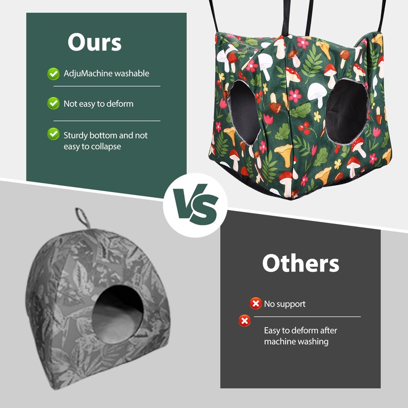 - 🌟 Adjustable straps to adapt to different cages: The mouse hammock is equipped with adjustable straps and multiple connection points, which can easily adapt to cages of different sizes and shapes. Whether you have a square cage or a special-shaped cage, you can create an exclusive and comfortable space for your pet! No matter the size of your pet cage, keep your pet safe.