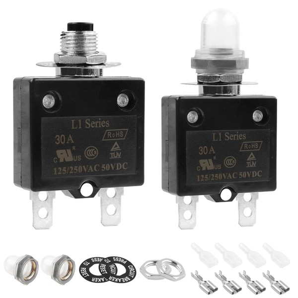 • Package Includes: 2 *thermal circuit breakers with quick connect terminals + 2* Nut + 2* Gasket + 2*Waterproof Button Caps