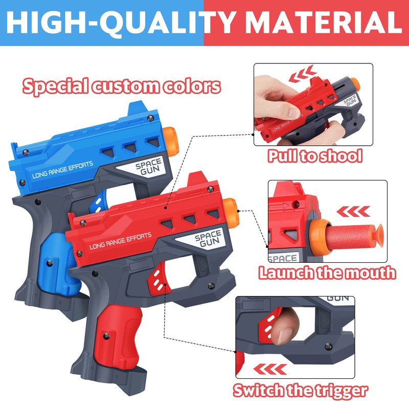 - 🔫Package List - You will receive 8 sets of toy gun sets, including 8 explosive energy guns (red/blue), 160 super soft foam bullets, 8 goggles, 8 masks and 8 wristbands. Children can enjoy starting gun games with their friends.