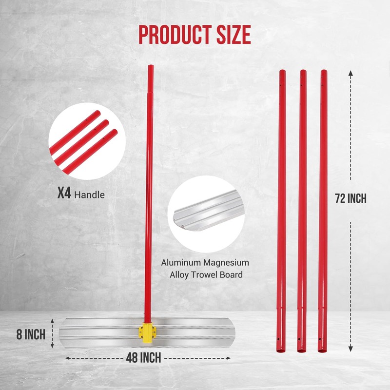 - Enhanced Work Efficiency: Bull float measures 48 x 8 inches and weighs 22.5 lbs, dual rounded ends to maximize coverage area, ensuring smooth transitions and a flawless finish while saving valuable time on the job.
