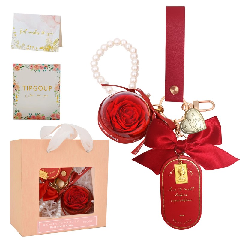TIPGOUP Birthday Present for Women, Popular, Preserved Flowers, Key Chain, Flowers that Never Wither, Sixtieth Birthday Celebration, Retirement Gift, Mother, Girlfriend, Wife, Anniversary, Valentine's Day, Mother's Day, Christmas, Housewarming Gift, Red Rose