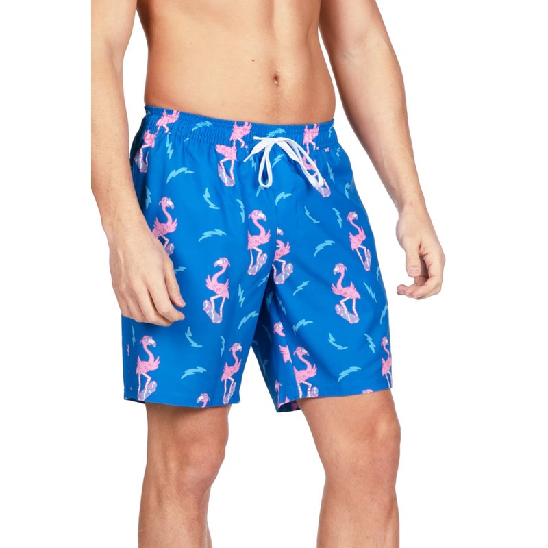 Tipsy Elves Traje de baño - Traje de baño clásico y elástico con entrepierna de 7 pulgadas para hombre con forro de malla, Tabla elástica del paraíso (azul rosa), X-Large