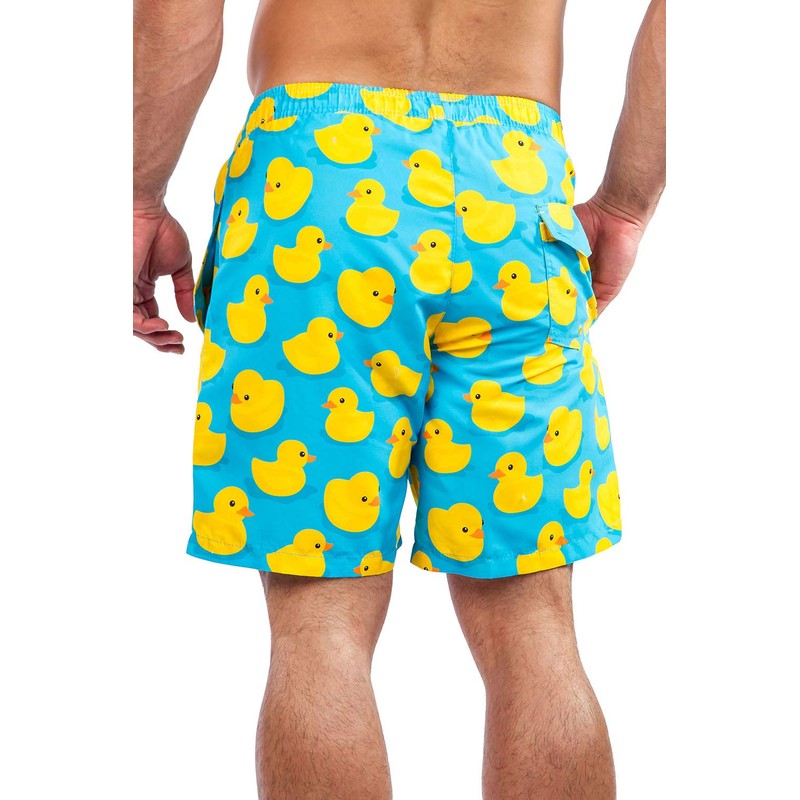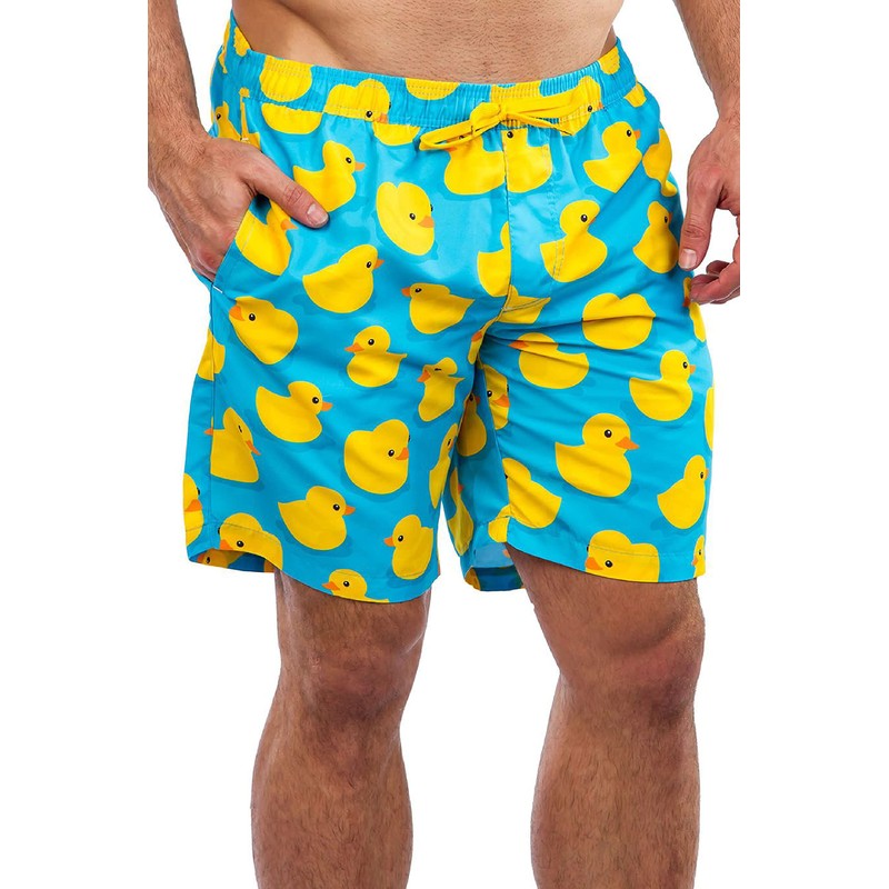 Tipsy Elves Yellow Rubber Ducky Classic Fit 7 Inch Inseam Swim Trunks for Men...