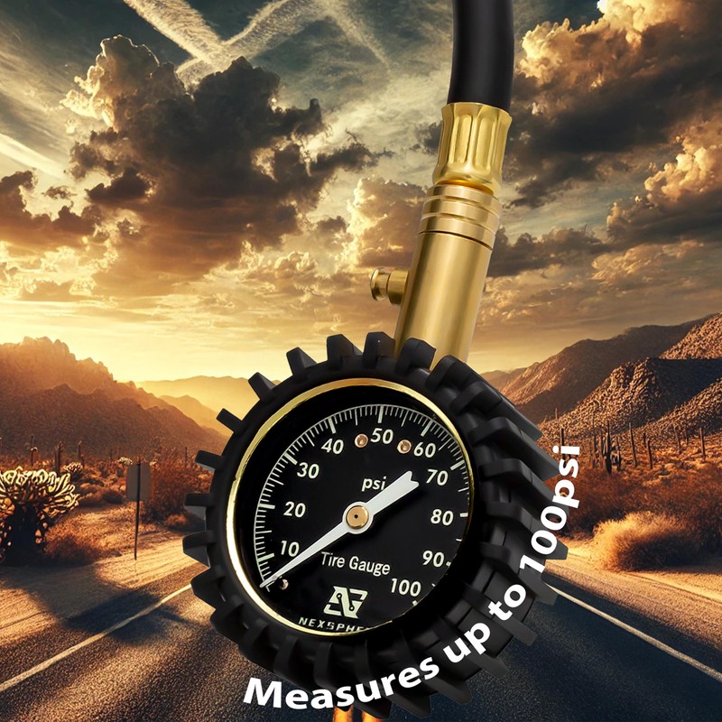 - ➤【PROCESS LEVEL ACCURACY】- The NexSphere tire pressure gauge is ANSI B40.1 certified, delivering high-accuracy readings from 0-100 PSI to help you maintain proper air pressure for better fuel efficiency, safety, and longer tire life