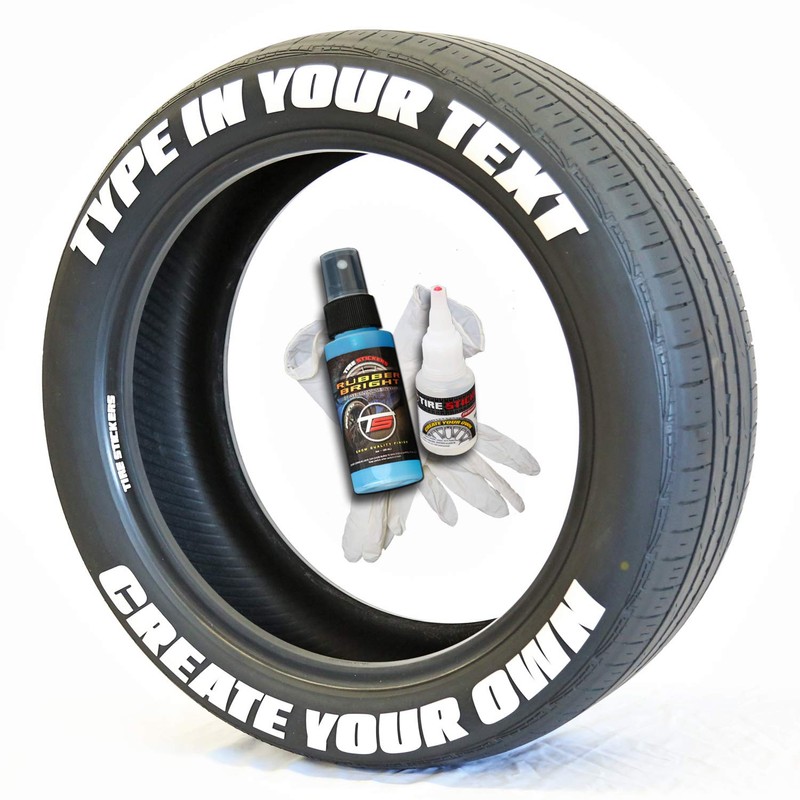 Tire Stickers - Create Your Own Custom Tire Lettering Add-On Accessory - DIY/Easy/Glue & 2oz Touch-Up Cleaner - Custom Sizing/White (Pack of 8)