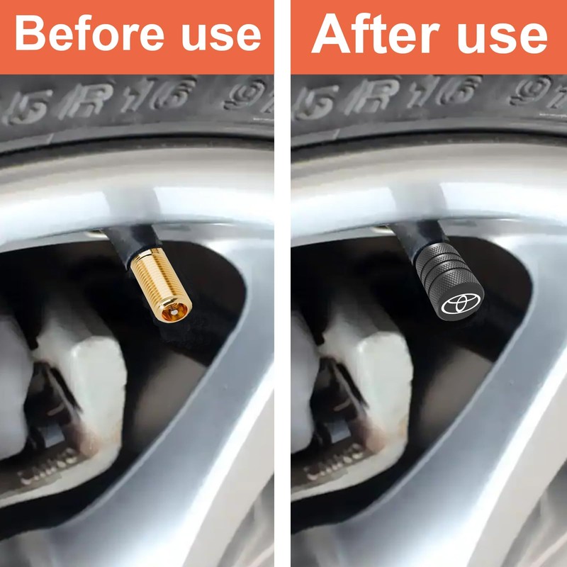 Tire Valve Caps, Copper, Black, Vehicle Specific Fit (Toyota, Corolla, RAV4, Highlander), Passenger Car, Automotive Valve Stem Caps