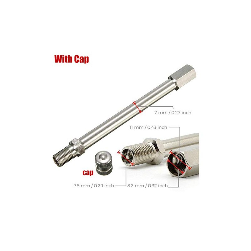 Tire Valve Extension Adaptor POWERTOOL Air Tyre Stem Extender Inflation Straight Bore for Motorcycle, Bike, Mower and Scooter (100mm Without Cap, Sliver)