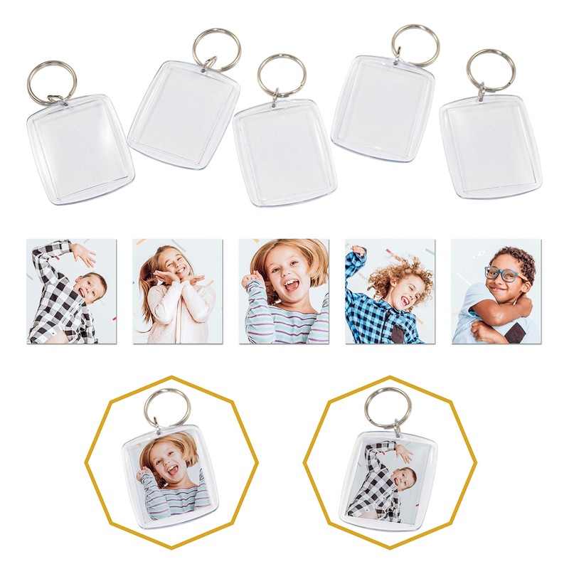 What you get: 25 transparent acrylic key rings, with sturdy key ring, each individually packed in a polybag with release paper. Versatile use: as a promotional item for your company, for crafts with your favourite photos, or simply for yourself, with the passport photo of your loved ones.
