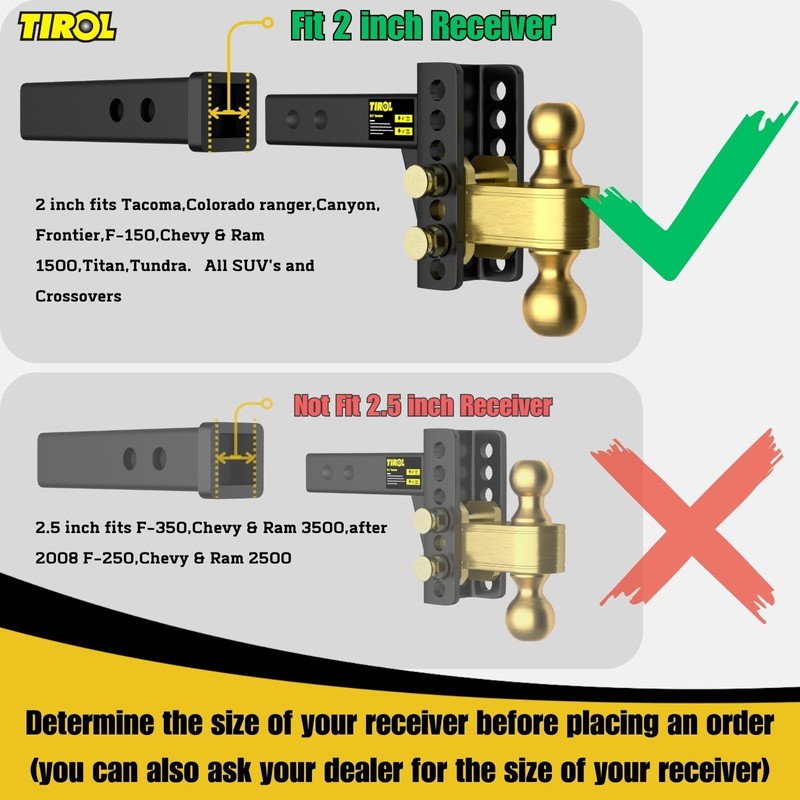 TIROL Adjustable Trailer Hitch - Fits 2" Receiver, 4 Inch Drop/Rise Hitch, 2" & 2-5/16" Ball Hitches, Dual Balls 25000 LBS Capacity - Tow Hitch for Heavy Duty Truck