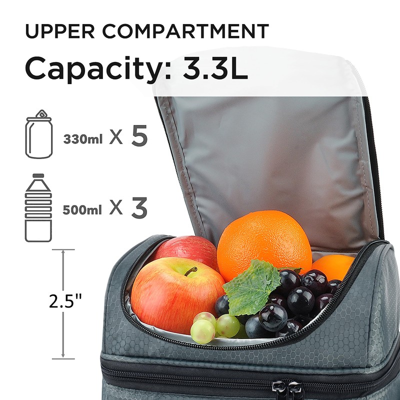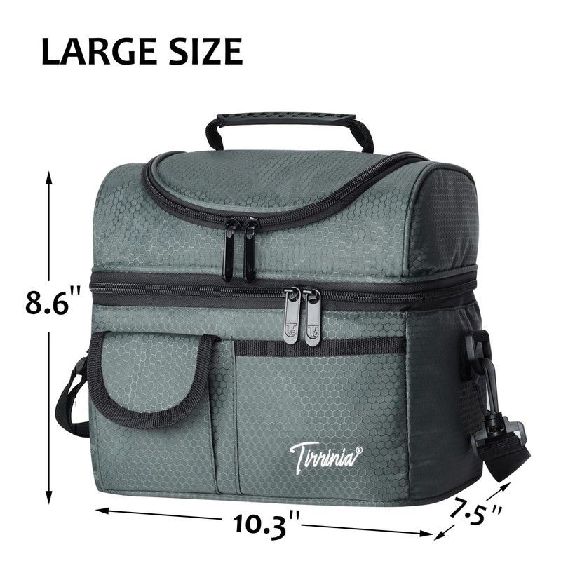 - DOUBLE DECKER DESIGN LUNCH BOX: This dual-compartment lunch bag is ideal for organizing your food like a pro. Store your meal prep bento containers, sandwiches, or larger items in the spacious bottom compartment (10.2 x 7.5 x 5.5 inches). The upper deck (10.2 x 7.5 x 2.5 inches) is perfect for snacks, fruits, or drinks. This smart layout makes this men's lunchbox for work the ultimate choice for keeping hot and cold foods separate throughout the day.
