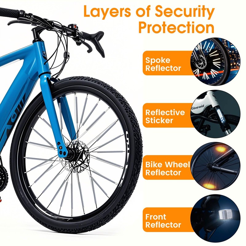 -- This combination of reflectors bicycle and reflective stickers provides comprehensive reflective protection, provides layers of safety and makes it easier for riders to be seen at night and in low light conditions.