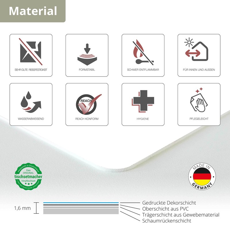 - VERPACKUNGSEINHEIT: In einer Verpackungseinheit befindet sich 1 Tischset.