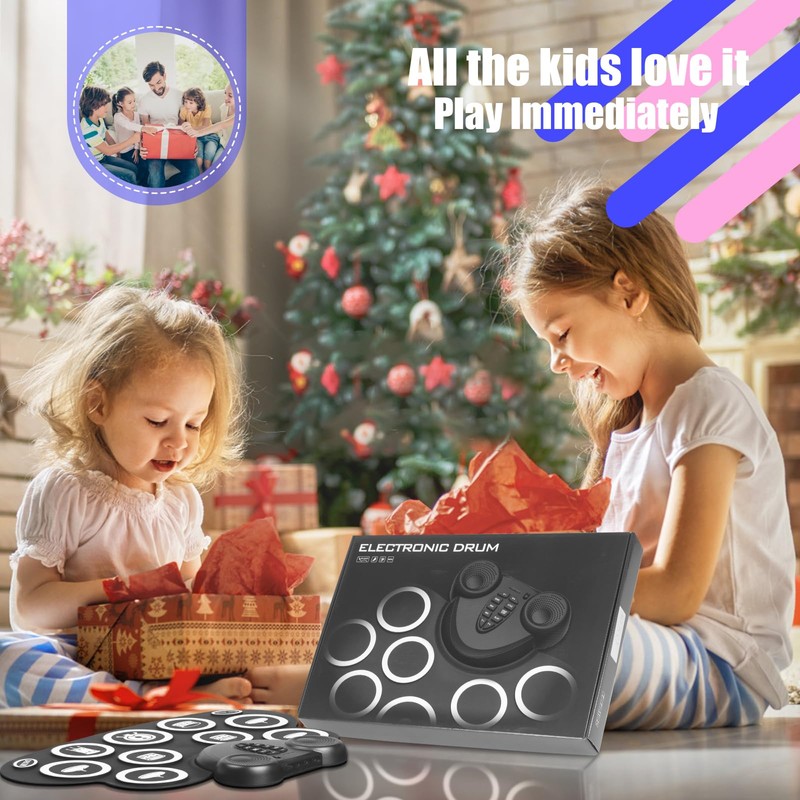- 🥁【Fun Drum Pad Machine】electric drum pad 's high-quality sound source sample is taken from a real drum source, faithfully reproducing the acoustic drum's sound. 9 drum pads, 7 drum styles ,10 demon songs, 10 accompaniments were set up to accommodate the needs of performance and entertainment.