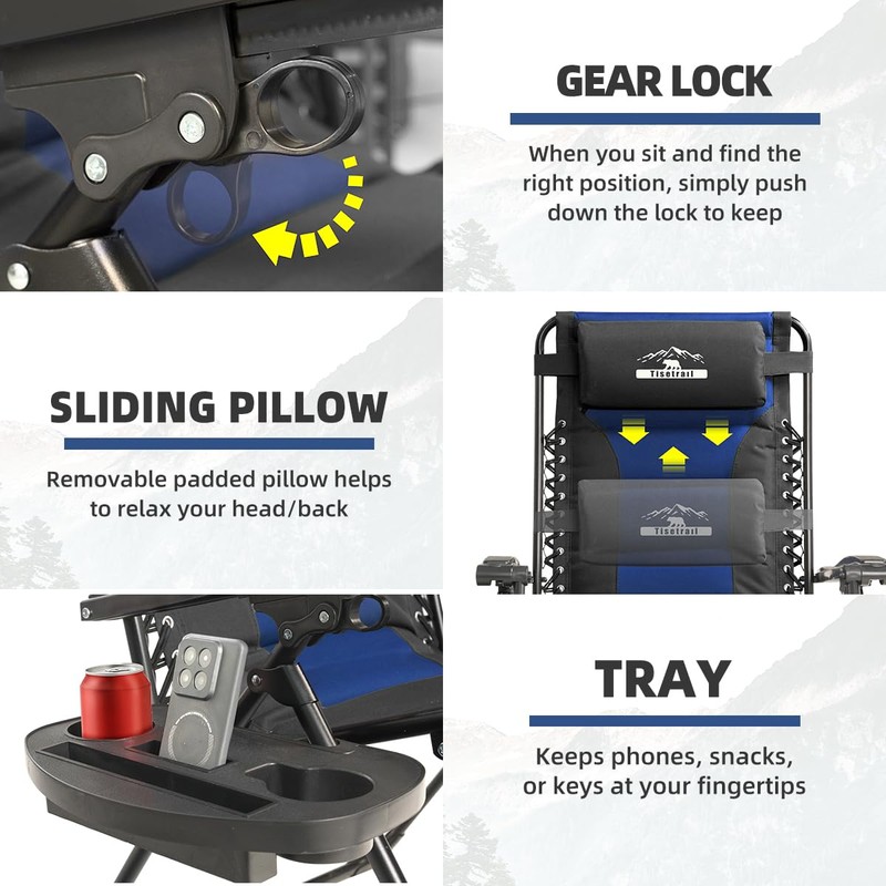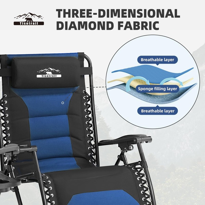 Tisetrail Zero Gravity Lounge Chairs - Set of 2 Oversized Reclining Patio Chairs with Adjustable Pillow & Cup Holder (500lbs Capacity, Black/Blue)