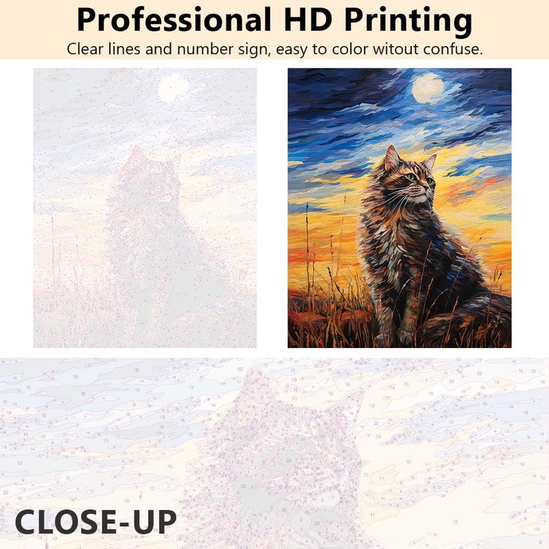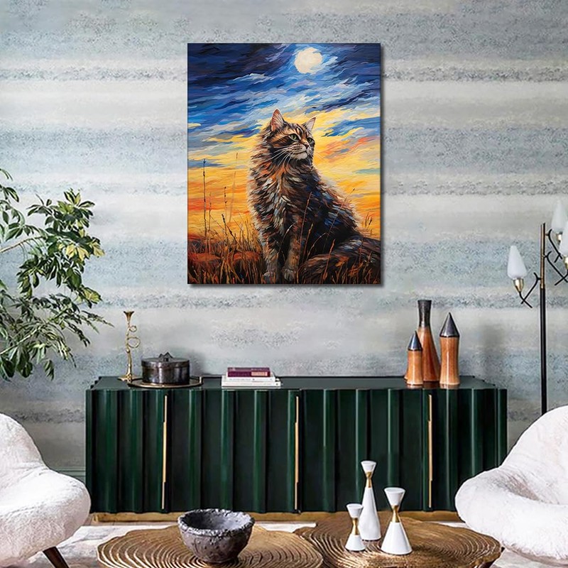 TISHIRON Cat Paint by Numbers for Adults Beginners Animal Melancholy Cat Moon Painting Painting by Numbers Kits on Canvas Acrylic Paint Drawing Painting Brush Oil Painting Home Decor 16 x 20 Inches