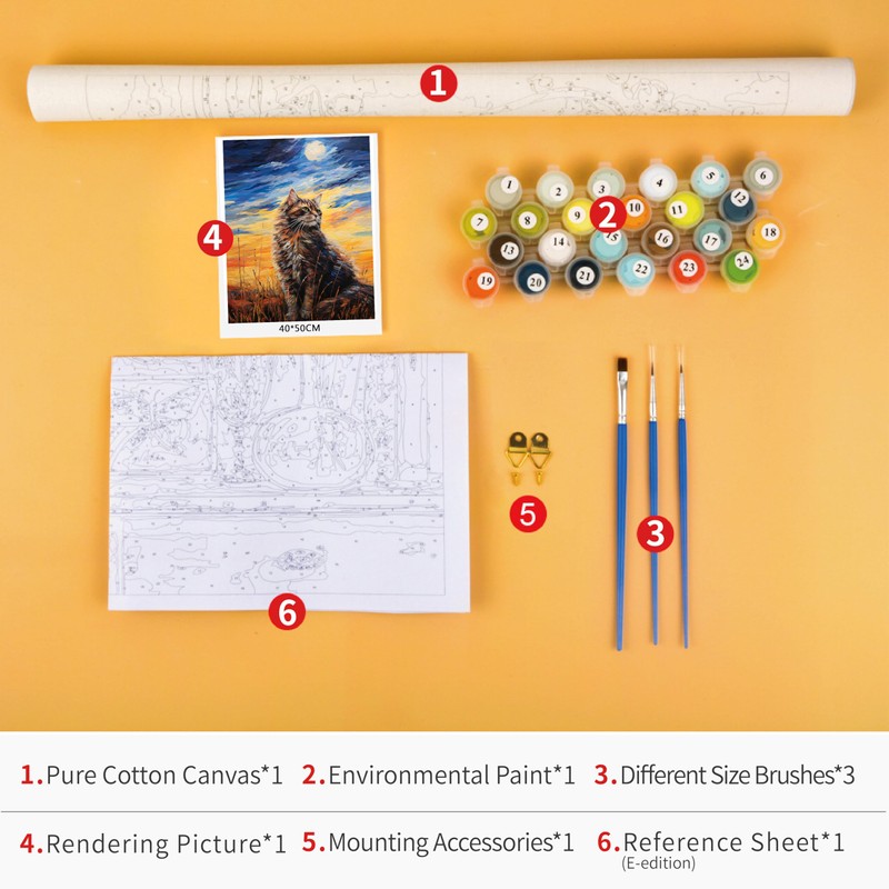 - Package includes: painting by numbers kits contains a 16 x 20 inch canvas (frameless), 3 nylon brushes, a complete set of acrylic paints, a reference sheet and an example oil painting.
