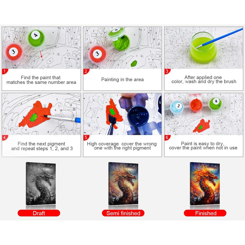 • EASY TO BE A PAINTER The paintings are simple and easy to paint, not complicated, and can be easily handled by children, adults and the elderly. Two simple steps to complete a painting: First, dip the paint. Secondly, paint the corresponding numbers on the canvas.