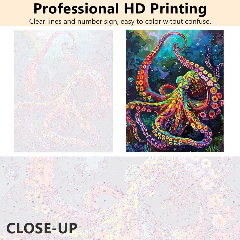 TISHIRON Paint by Numbers Adults Beginners The Octopus with Coloured Touch Digital Painting Painting by Numbers Kits for Adults Children Painting Crafts 16 x 20 Inches