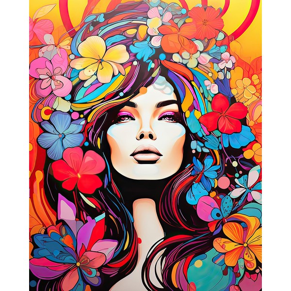 TISHIRON Paint by Numbers for Adults, Women and Flowers, Painting by Numbers for Beginners, Vivid Pop Art Painting on Canvas for Decoration (40 x 50 cm)