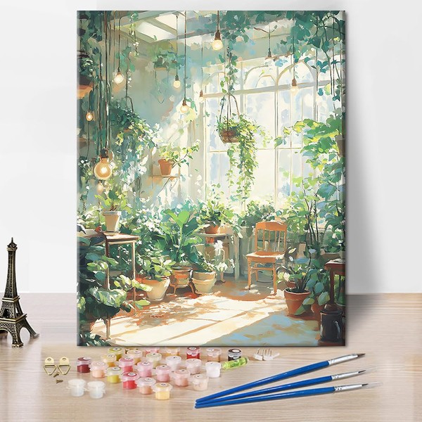 TISHIRON Paint by Numbers Kit for Adults Beginners Green Plants, Adults Paint by Numbers with Brushes Sunlight, DIY Acrylic Painting by Numbers for Home 40 x 50 cm (Frameless)