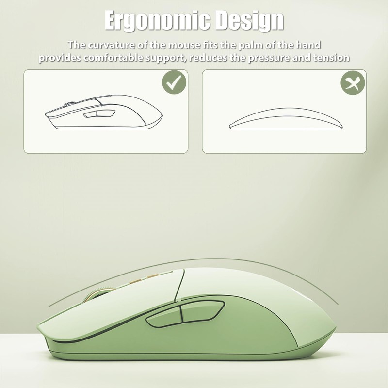 TISHLED Wireless Gaming Mouse Tri-Mode 2.4GHz/Bluetooth 5.0/Wired USB-C 5-Level DPI Rechargeable Ergonomic Silent Optical Mice for iMac/MacBook/Computer/Laptop, Matcha Green