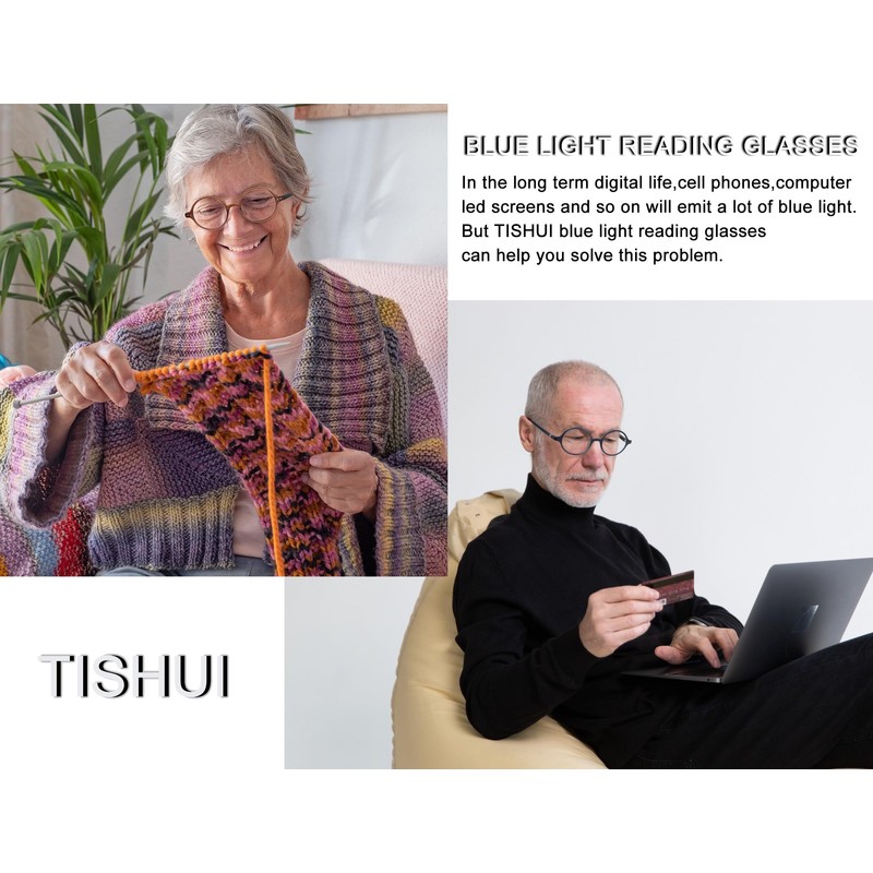 - 【Blue Light Reading Glasses】TISHUI anti blue light round readers adopt double protection technology, not only coating the surface of the lens with scratch-resistant layer, but also adding blue light factor into the basic material of the lens, which can block harmful blue light more effectively for a long time.