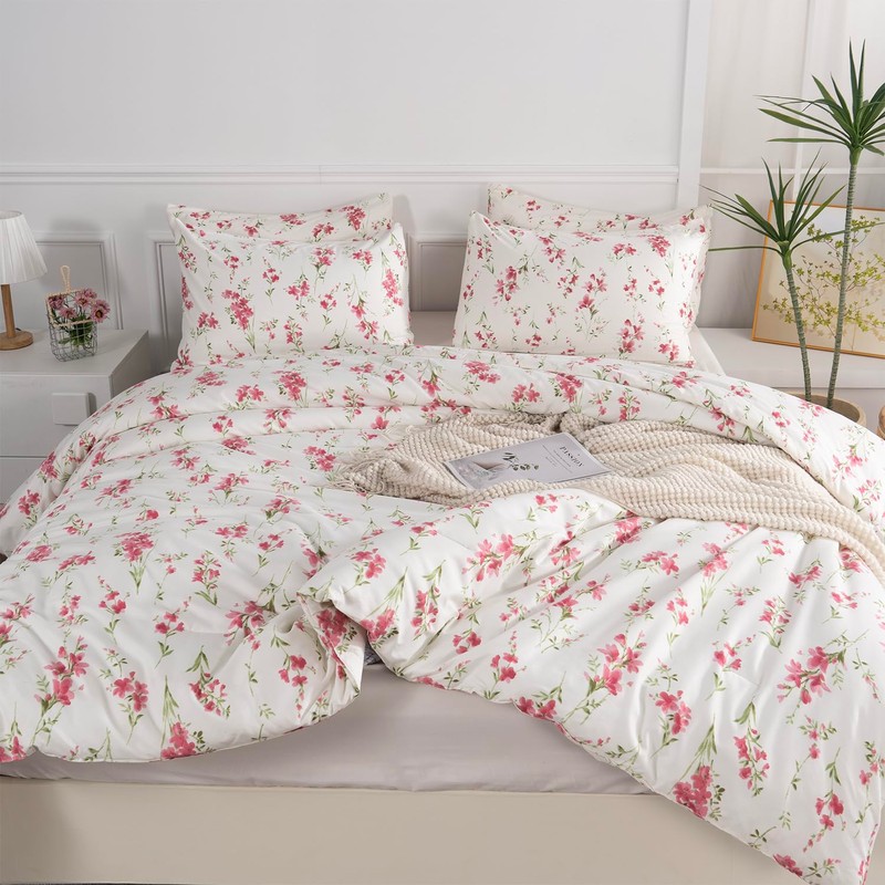 - 【EASY CARE】The king size floral comforter is easy to clean. Machine wash in a gentle cycle with cold water, For year round softness and prevent pilling up, it is highly recommended to wash it sun-dry or tumble dry in low. Its subtle yet dense stitches prevent the filling from shifting. due to our bedding comforter sets are vacuum packed, you can expose it to sunlight and tap gently, then it will re-fluffed nicely after hours.
