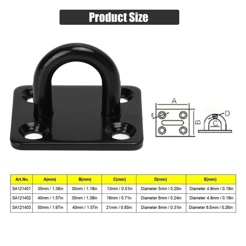 - 【Eye Plate】This square eye plate is made of one-piece casting molding, thickened with 3mm/0.12in steel for higher load capacity. Perfect for long term outdoor work with solid welding and enhanced load bearing capacity. Suitable for indoor and outdoor installation.