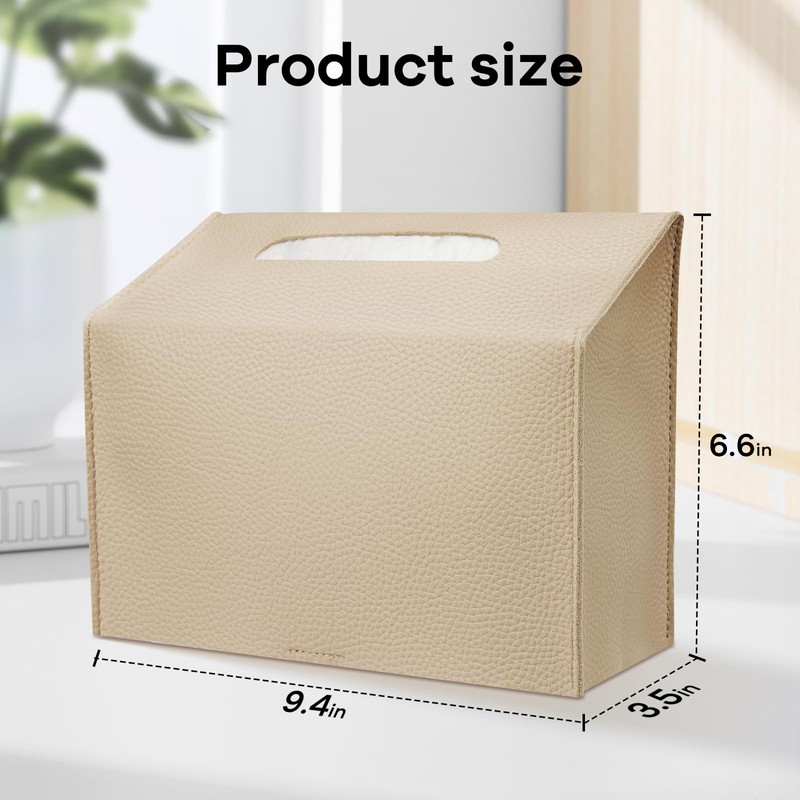 Tissue Box Cover Holder Compatible with Kleenex Disposable Paper Hand Towels, Leather Paper Towel Dispenser for Tabletop, Bathroom, Car, Office (Khaki -2 Pack)