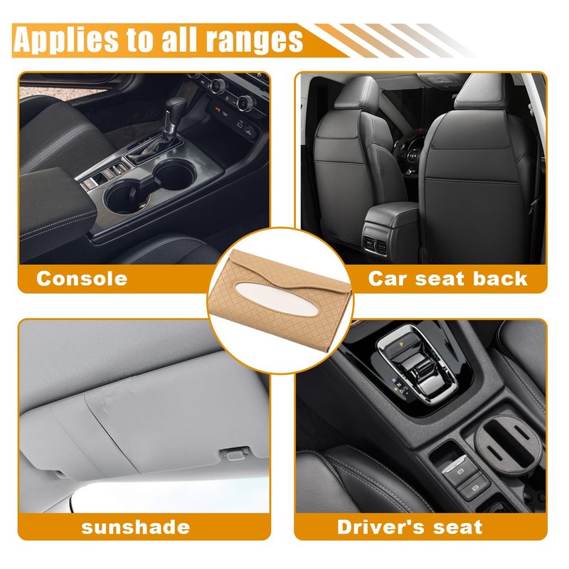- 【Superior Quality】: This tissue holder car is made of high-quality leather material, finely sewn, and has excellent wear resistance, scratch resistance, and waterproofness. Even after long-term use, it is not easy to fade or damage. Moreover, its surface is soft and smooth, has a comfortable touch, and is easy to clean. When it gets dirty, you can only gently wipe it with a damp towel to make it look brand new.