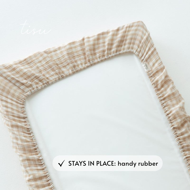 TISU Muslin Changing Pad Cover for Baby Girls Boys, Premium Soft Breathable Cotton in Gingham Pattern, Diaper Change Table Pad Cover (Beige Gingham)