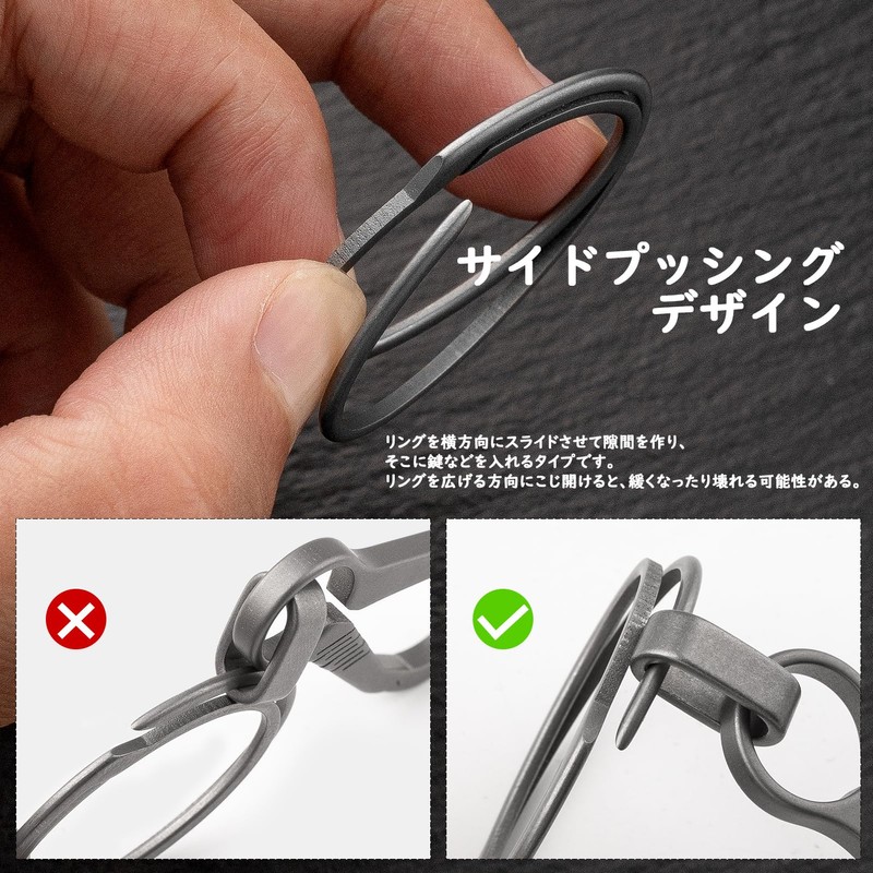 - The design of side pushing is that there is no need to spread it out with your fingers or nails, and there is no gap already made. This allows you to easily raise the tip of the keyring