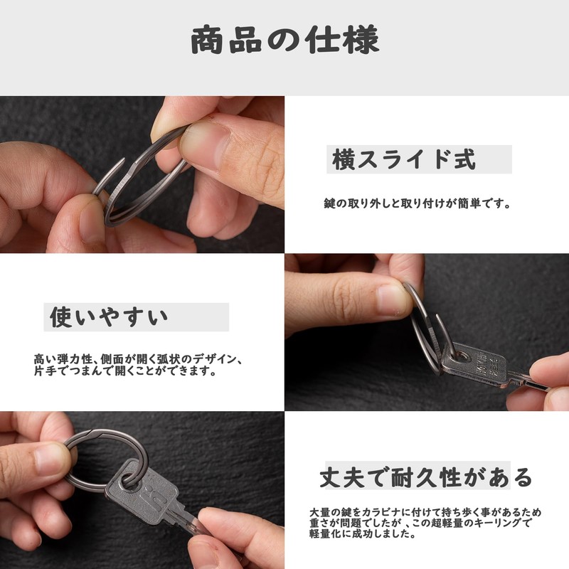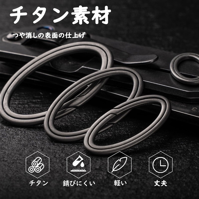 - Product Contents: Titanium key ring L size (outer diameter 1.6 inches (40 mm) x 1 + M size (outer diameter 1.4 inches (35 mm) x 4 pieces