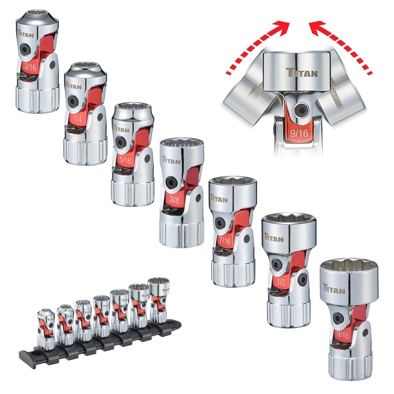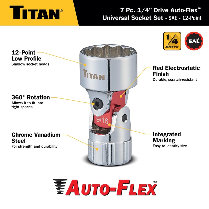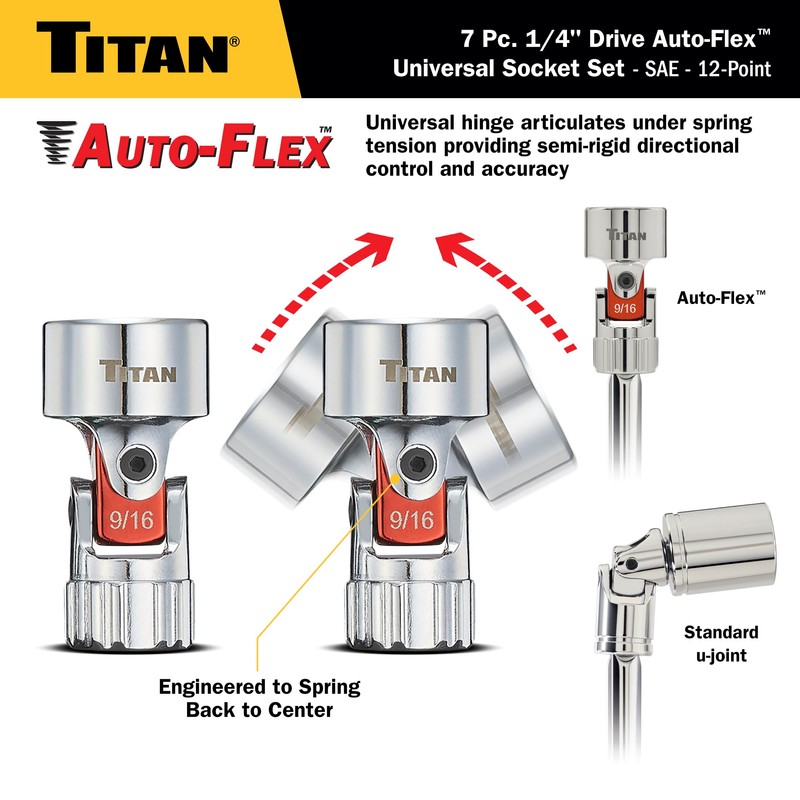 Titan 66860 7-Piece 1/4-Inch Drive SAE Auto Flex Universal Socket Set, 12-Point, 3/16-Inch to 9/16-Inch