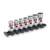 - Set Includes: 3/16, 1/4, 5/16, 3/8, 7/16, 1/2, 9/16-Inch auto flex universal sockets, and storage rail