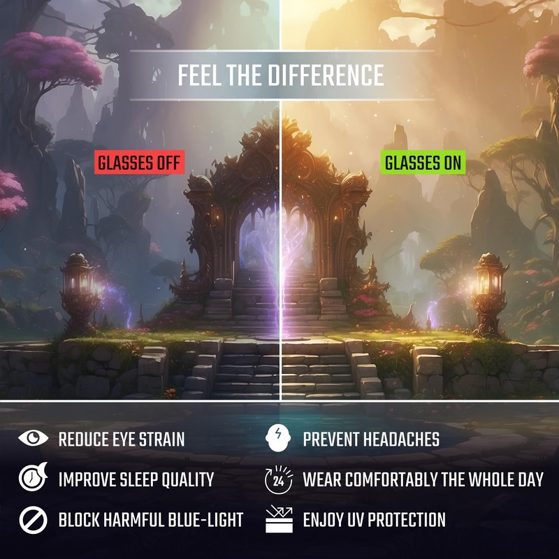 - IMPROVE SLEEP QUALITY: Gaming can lead to lots of blue-light exposure and eye strain. Stop blue-light from harming your eyesight and messing up your REM sleep cycle by wearing gamer glasses while gaming. Our gaming glasses for men were made specifically to protect sleep cycles.