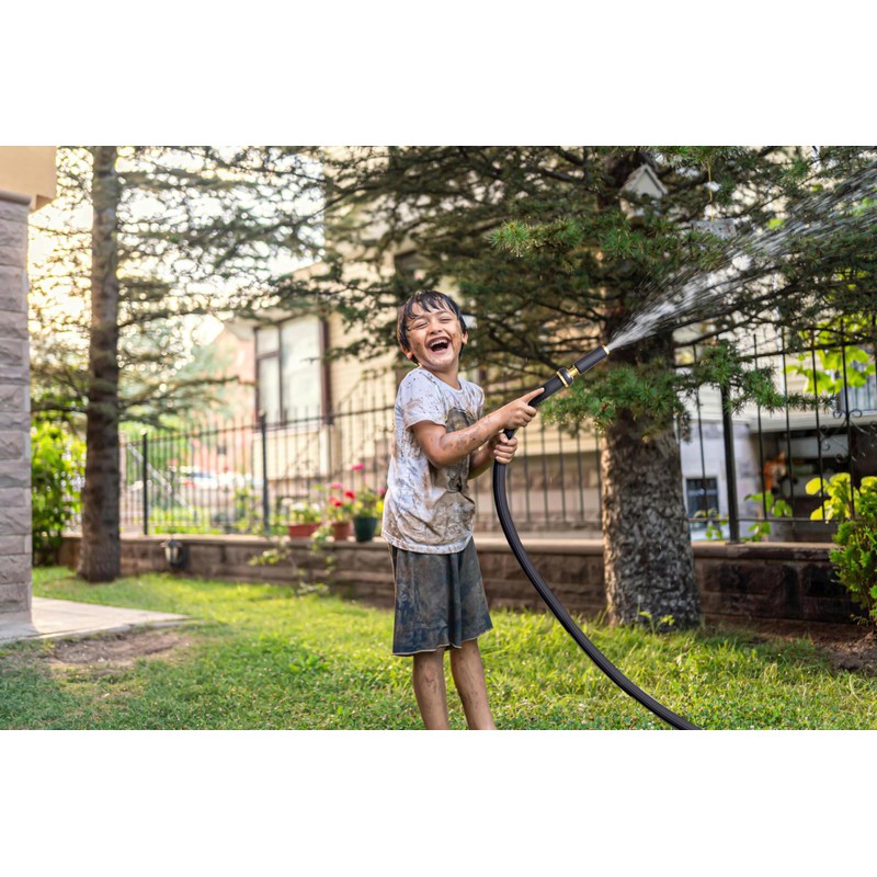 - EFFICIENT WATERING & CLEANING: This kink-resistant full length hose makes gardening, vehicle washing, and cleaning tasks effortless. Featuring an ergonomic handle and a robust 1/2” middle layer, it delivers strong, steady water flow while remaining static in length, offering stability and reliability for various applications.