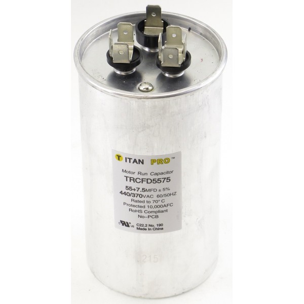Titan TRCFD5575 Dual Rated Motor Run Capacitor Round MFD 55/7.5 Volts 440/370