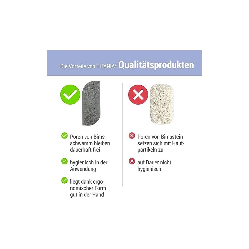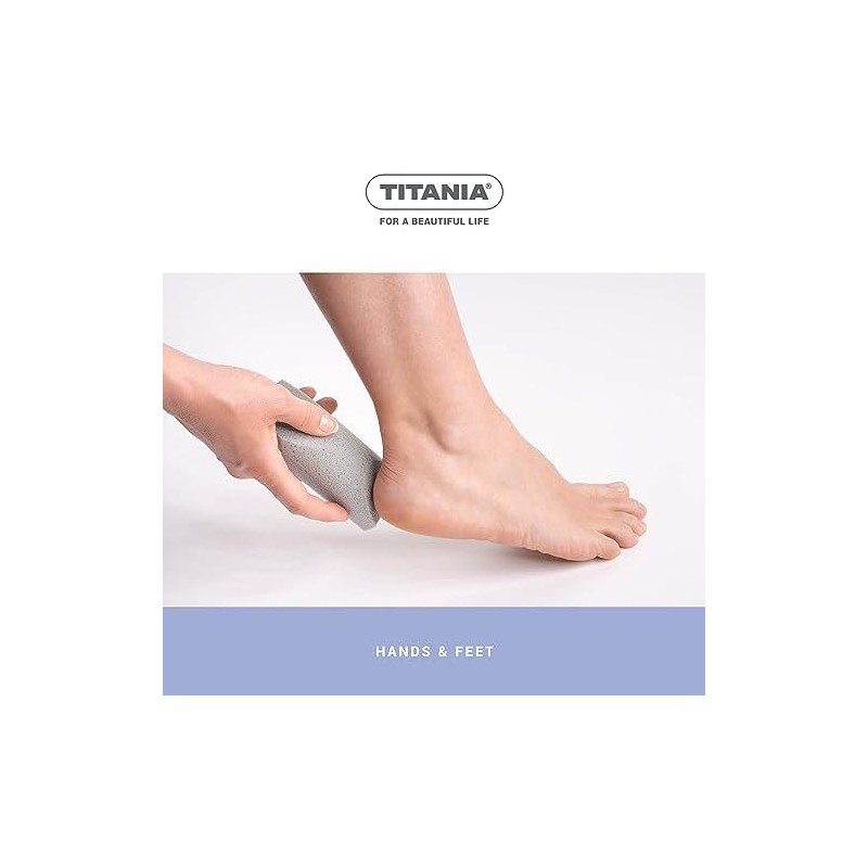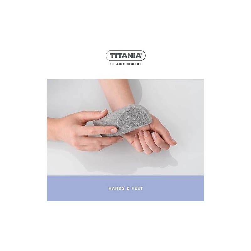 - Handy pumice sponge – the TITANIA pumice sponge with its handy shape ensures skin-friendly hand and foot care by gently and thoroughly removing calluses and calluses and calluses as well as coarsest dirt. A must-have for soft and gentle feet and hands.