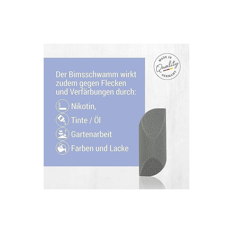 - Hygienic pumice sponge - Our TITANIA pumice sponges are synthetic pumice sponges made of PU foam. Unlike pumice stones made of natural lava stone, synthetic pumice sponges open new pores again and again, so that the pores do not clog with skin particles. Synthetic pumice sponges do not have to be cleaned elaborately and are significantly more hygienic than pumice stones.