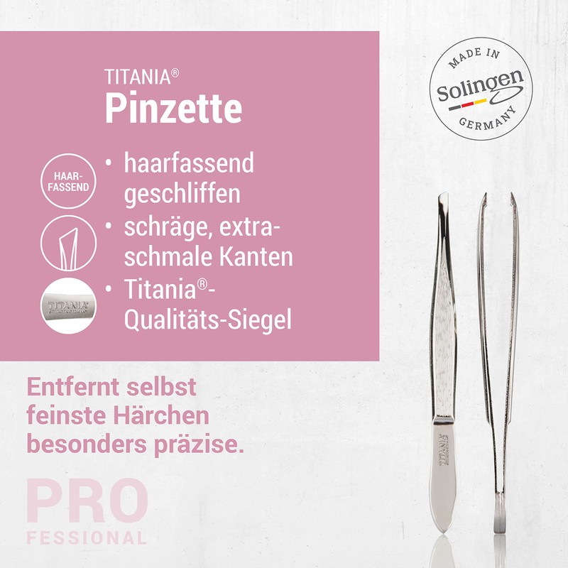 - Your beauty must-have – the TITANIA tweezers from our exclusive "Face Edition" combine our traditional craftsmanship, state-of-the-art manufacturing processes and high-quality materials for a perfect care result. The tweezers are not only suitable for home or travel, but also for professional use in the beauty salon.