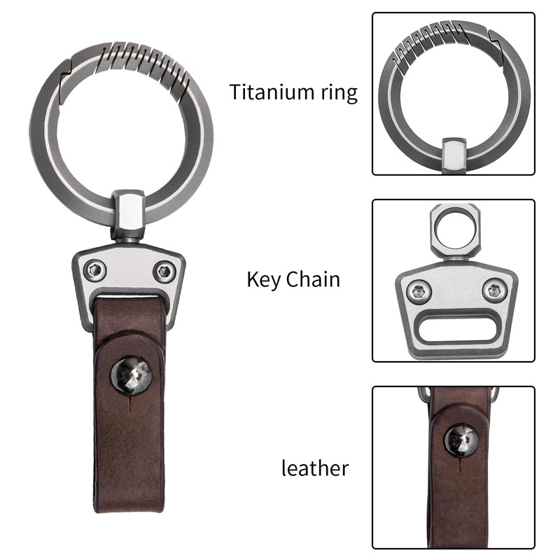- ✅ SUPER STURDY KEYRING - Titanium is extremely robust and different from conventional torsion springs. The carabiner is super resilient and stays closed so you don't lose keys. The titanium key ring and stainless steel key rings are held together with leather and connected by a screw bolt, safer to use and more convenient to disassemble.