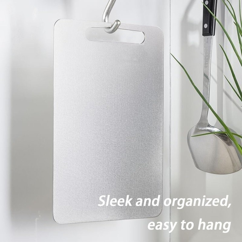 - 【Effortlessly Clean, Always Ready】 Our chopping board prevents food and liquids from sticking. Simply rinse with water, and metal cutting boards for kitchen dries instantly, ready for your next culinary adventure