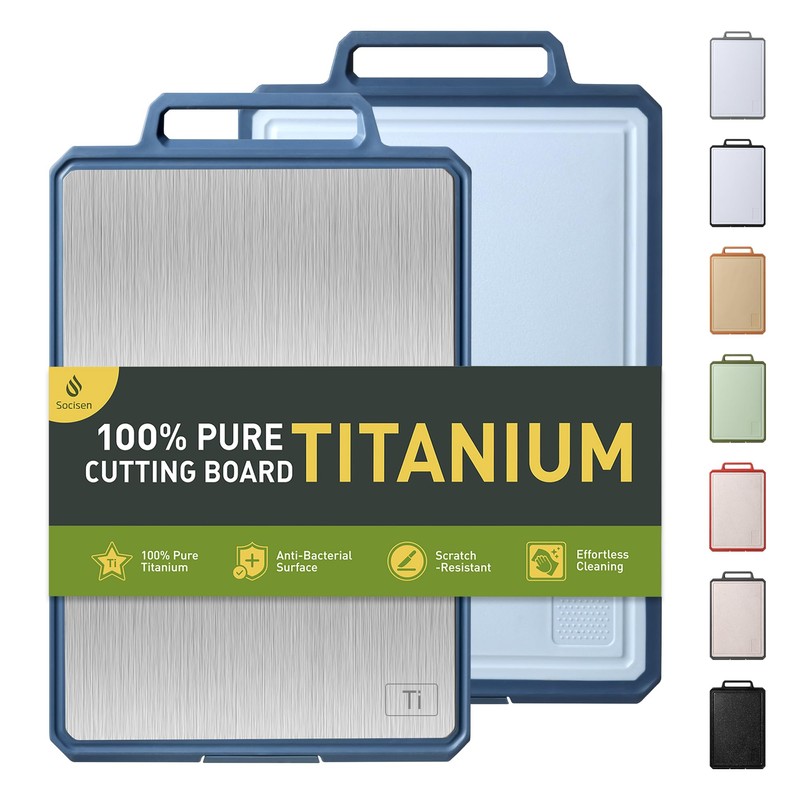 • Pure Titanium Cutting Board for Versatile Use:The Socisen titanium cutting boards for kitchen features a food grade 100% pure Titanium side for slicing meats and a PP side for fruits and vegetables. This dual-sided design ensures food safety and versatility, letting you handle different ingredients efficiently. Perfect for everyday cooking, this cutting board providing a durable and practical cutting solution for your kitchen needs.