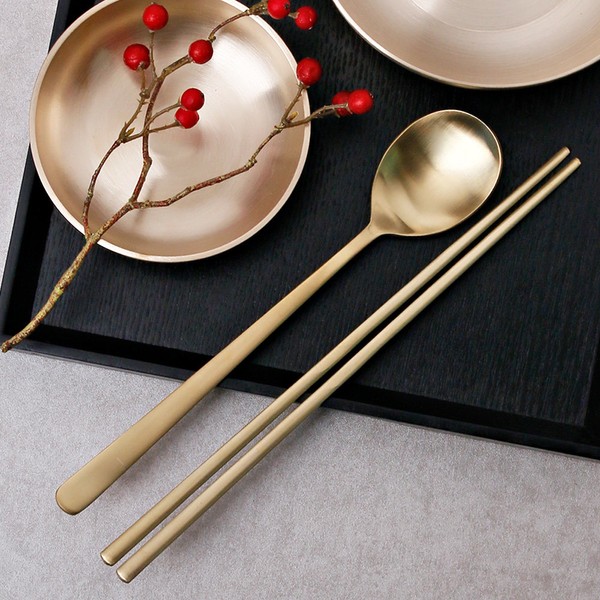 Titanium Gold Matte Cutlery Set / 티타늄 골드 매트 수저세트