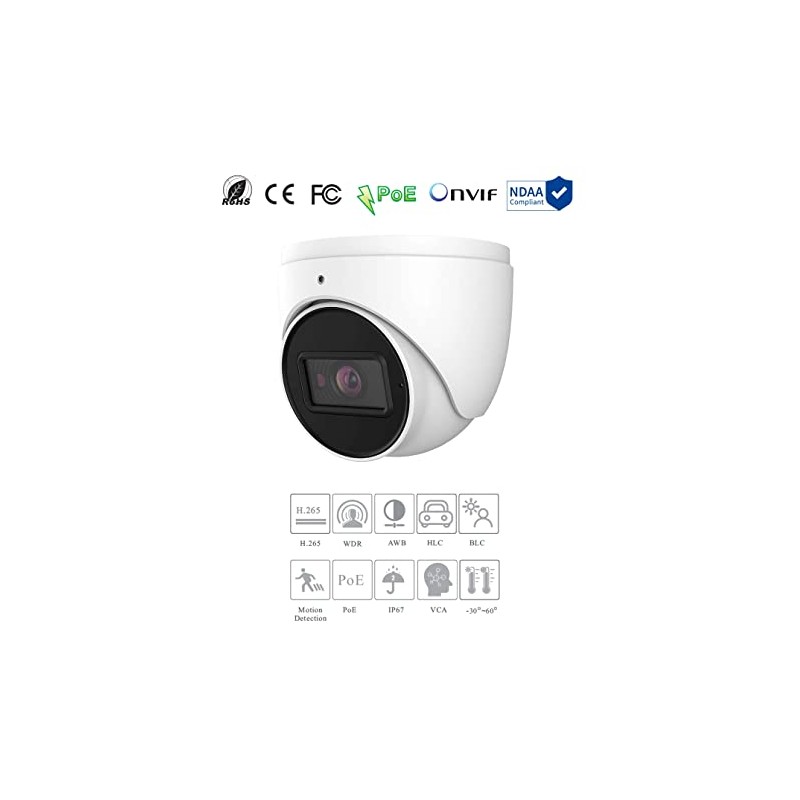 Titanium IP-5IRD5S44/28 5MP IR Waterproof Turret Network Camera, Max 2880x1620 Built-in Microphone, True WDR, H.265+, MicroSD Slot, VCA NDAA Compliant Security IP Poe Eyeball Camera